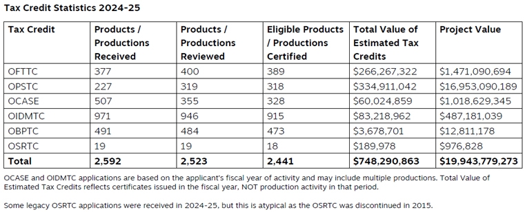 Ontario Creates publishes annual tax credit statistics.